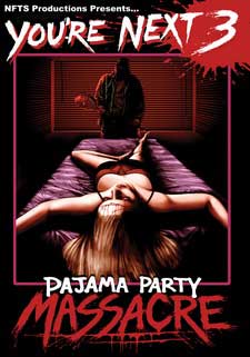 The next NFTS flick I watched was 2007’s You’re Next 3: Pajama Party Massacre. This is an interesting one. The film, which runs only 25 minutes, stars only three people: Two girls having a pajama party (calling them “girls” is being nice. Why are two 26 year olds having a sleepover anyway?) and the killer. The two girls, who could definitely fill out any bikini top, are having a sleepover and are attacked by an axe killer. That’s the plot. So, you might be asking, is there a You’re Next 1 and 2? Why yes there is. The first two, included in the “extras”, were short films in which Stephenson was basically testing his film making chops and seeing if he actually enjoyed making horror flicks. When you watch all three You’re Next shorts back to back you can really see Stephenson developing as a film maker.