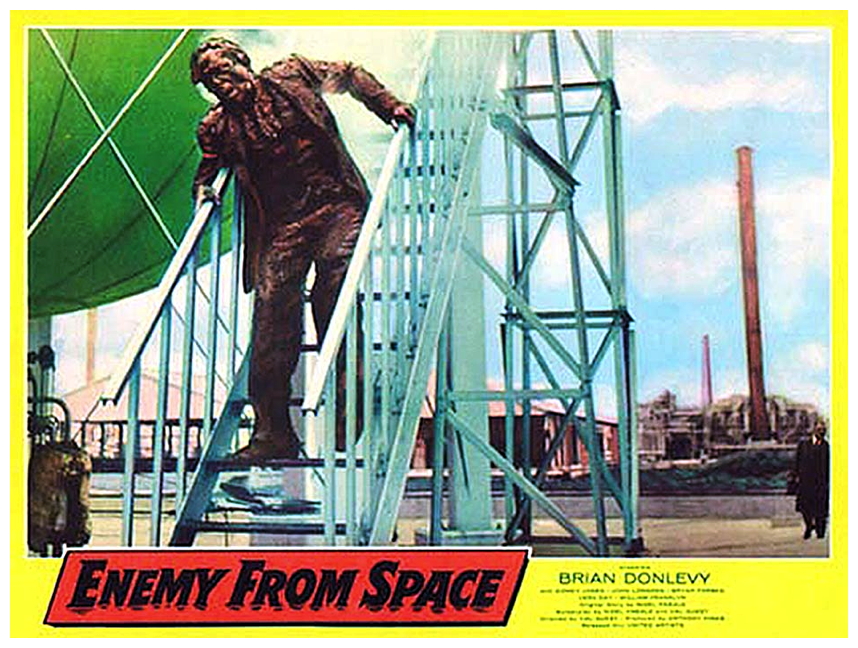 “Professor Quatermass, trying to gather support for Moon colonization, is intrigued by the mysterious traces that have been showing up on his radar – meteorites crashing down. Following them to the place where they should be landing he finds a destroyed village, a mysterious factory too close to his designs for the Moon colony for comfort, and some strange aerodynamic objects containing a mysterious, ammonia-based gas that infects one of his assistants. Officially, the factory is producing synthetic food but, despite the veil of secrecy surrounding it, Quatermass succeeds in finding out it harbours aliens with deadly designs on the Earth. The second in Hammer’s trio of screen versions for Nigel Kneale’s classic fifties BBC serials, with the same director and star as The Quatermass Xperiment.”
