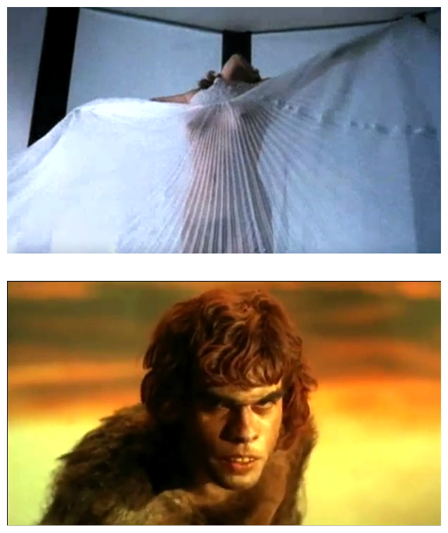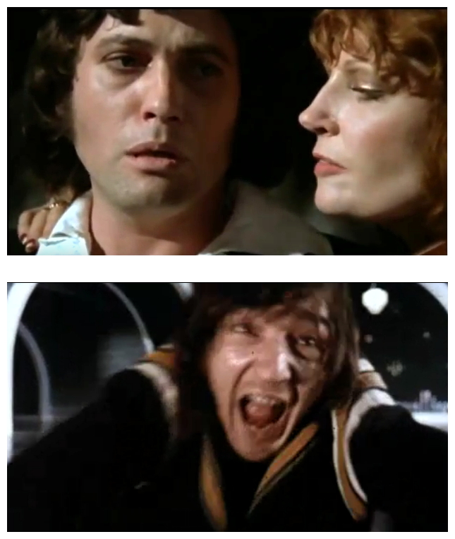 The Final Programme certainly looks impressive but not much of Moorc**k’s unique creation remains. The Cornelius patriarch has passed away, leaving behind some hidden microfilm on which is a mysterious ‘final’ computer programme that contains a number of profoundly important secrets. Apart from Jerry (Jon Finch) there are others involved in the hunt for the microfilm, including his evil brother Frank (Derrick O’Connor), who has kidnapped their sister Catherine (Sarah Douglas) whom Jerry loves in a way that exceeds brotherly affection. There’s also the awesome Miss Brunner (Jenny Runacre), who has a tendency to consume her lovers literally and completely, bones and all. In the novel, the programme serves to combine Jerry and Miss Brunner into one single creature – a bisexual self-replicating Messiah who leads the population of Europe into the Mediterranean in a lemming-like rush to oblivion but, in the film version, their combined bodies form a shaggy neanderthal who winks at the camera, does a Humphrey Bogart impersonation and walks off alone. The film does capture some of the off-beat atmosphere of the book, suggesting a world where reality itself is crumbling around the edges, but overall it falls far short of complete success.