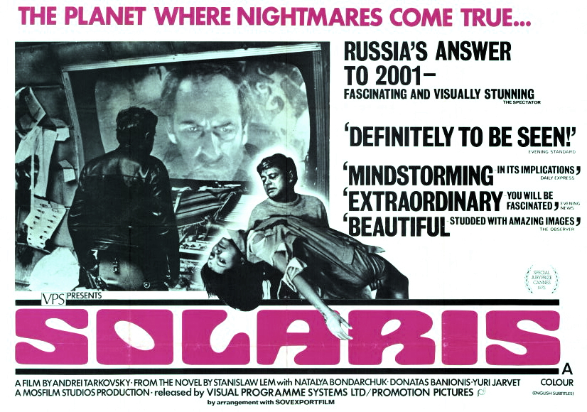 Newcomers to the genre often think a science fiction story must be about technology. Bzzt! Wrong. Some of the questions that science fiction tackles best are psychological, philosophical and metaphysical. Because it allows bizarre new perspectives, science fiction can give us new insights into traditionally difficult areas of thought. The masterly Russian film Solaris (1972), adapted from a philosophical science fiction novel from Polish author Stanislaw Lem, illustrates this point perfectly. It is, however, a rather long film (166 minutes) paced much more slowly than we are used to in the West, and there’s no doubt that some of its viewers have been left baffled and sometimes bored. When dragged back for a second viewing, they usually like it more.