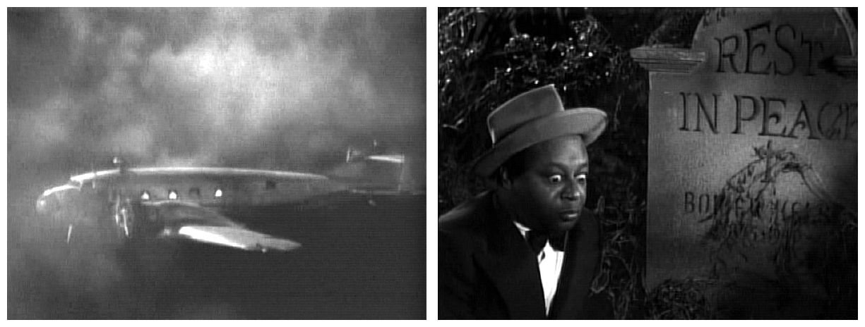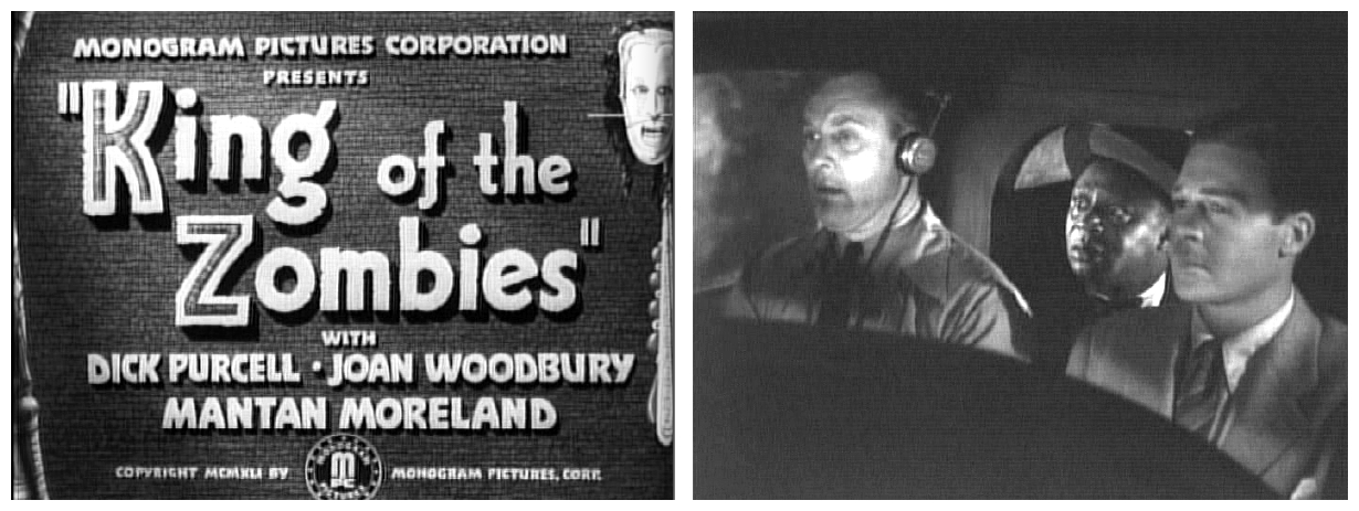 A tiny model plane carrying three men (how they all fit in there I’ll never know) crash-lands on a tiny model of a Caribbean island. The pilot (John Archer), his passenger (Dick Purcell) and his comic relief (Mantan Moreland) take refuge in an isolated mansion owned by a mysterious German doctor (Henry Victor). It may sound like the beginning of The Human Centipede IV, but it’s no-where near that tasteful. The quick-witted but easily-spooked comic relief is convinced the mansion is haunted by zombies, and spends the rest of the film trying to convince people of what he saw. A bit like Big Bird’s initial problem with Mr. Snuffleuppagus on Sesame Street, which just so happened to coincide with a spike in the number of nervous breakdowns experienced by children under the age of six.