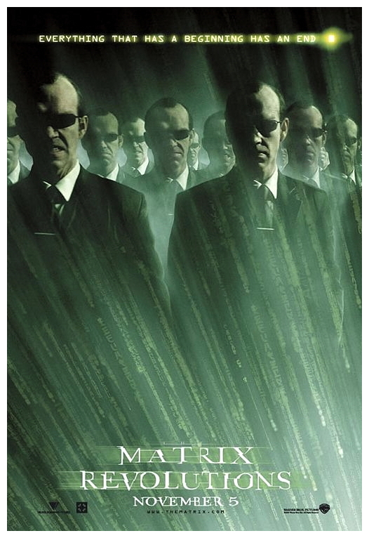 “The machine army continues to drill towards Zion. Within hours, they will overrun the population of the Zionites and lay extinction to human kind. Meanwhile, Neo is held captive by the Merovingian at the train station. Trinity and Morpheus set out on a journey to release him from a mysterious train operator. Also, Smith resumes his quest to kill ‘Mr. Anderson’ as he reveals his identity into the real world and resumes to replicate his program inside the system of the matrix, causing it to decay. All hope is placed in the freed Neo, who must travel to the city of the machines in the Logos ship with Trinity and bargain to save each kingdom from destruction by finishing Smith once and for all. But even with his new powers over the sentinels, will he be able to fight them off?” (courtesy IMDB)