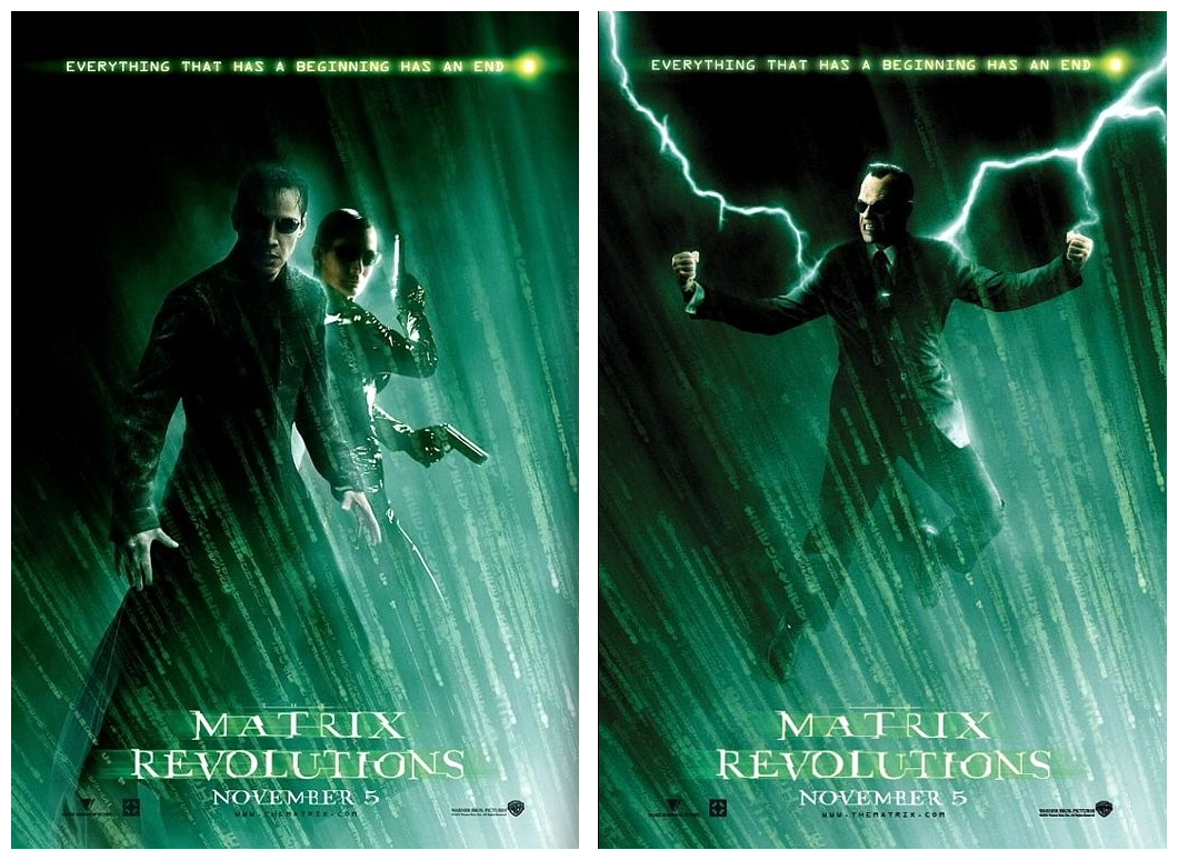 “Everything that has a beginning has an end,” or so said the profuse publicity for the third and final installment of one of the biggest movie events of this new century, The Matrix (1999) trilogy. While the cast and crew eased out a collective sigh of relief, the movie-going public was waiting with bated breath to see the outcome of the cliffhanger of The Matrix Reloaded (2003) released six months earlier. Would it live up to the lofty expectations of the rabid fans? Would it make up for the shonky bits in the previous film? Would it expand the backstory as the superb Animatrix anthology DVD did? And, perhaps most importantly, would it leave us with a satisfying finale? The one-two-punch release of the sequels blitzed cinemas that year, accompanied by a blaze of media hype. Released only six months apart, the sagas received simultaneous worldwide releases in 109 international territories.