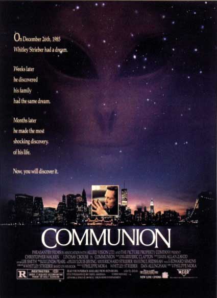 Whether you actually enjoy Communion (1989) probably depends on whether you take UFOs and supposed abductees seriously. If you do, then you’ll take this movie seriously because it claims to be a true account of a former unbeliever who, in therapy groups, comes to realise that he has not only been kidnapped by aliens, but that he has been subjected to sexual experiments. Enough hokum to keep any New Age hippy happy, I suppose. If you don’t take this sort of thing serious, then you’re likely to come to the conclusion that Communion is one of the weakest movies you’ve ever seen. The aliens are completely unbelievable and makes me wonder if Philippe was intentionally trying to make it look like a fifties B-grade movie. The lighting effects reminiscent of Close Encounters Of The Third Kind (1977) are way below standard, not to mention the sets, and a complete waste of Christopher Walken‘s talent as an actor.