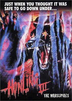 The first half of Joe Dante’s original The Howling (1981) is hip-funny, well-acted, stylish and scary, full of off-beat characters, old-time actors, horror film references, clever inside jokes and many delightful cameo appearances. Then the story goes out the window, and Dante goes overboard with the werewolf transformation scenes. As conceived by Rob Bottin, they are extremely impressive but they completely slow down the film because they take so long, and happen many times during a short period. Potential victims just stand there and watch instead of running away. It’s still far superior to any of its sequels, and right near the bottom of the list we have The Howling III: The Marsupials.