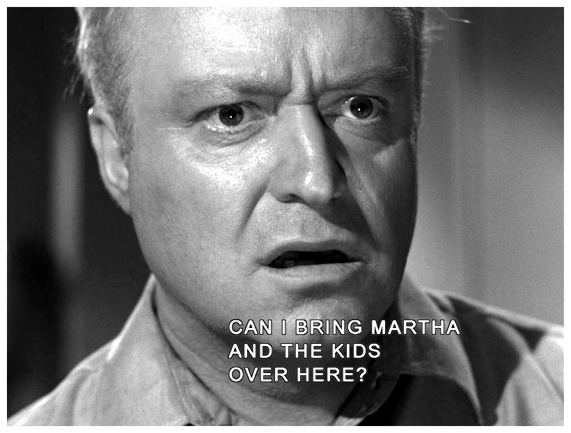 #68 THE SHELTER – On a typical evening in a typical suburb, Doctor Bill Stockton enjoys a birthday party being thrown for him by his wife Grace and their son Paul. Bill is well-known and liked by this gathering of friends and family, and has repeatedly administered to the health and well-being of each of the guests and their children. Everyone is very friendly and jovial, even when mention is made of Bill’s fallout shelter which he has built in his basement. Suddenly a Civil Defense announcement is made that unidentified objects have been detected heading for the United States. Everybody knows what that means: All-out nuclear war! As panic ensues, the doctor locks himself and his family into his shelter, while his friends become hysterical and demand to be let in. All the previous cordiality is now replaced with soaring desperation, pent-up hostility, searing racism and other suppressed emotions boil to the surface. Directed by Lamont Johnson from a script by Rod Serling starring Larry Gates & Jack Albertson.