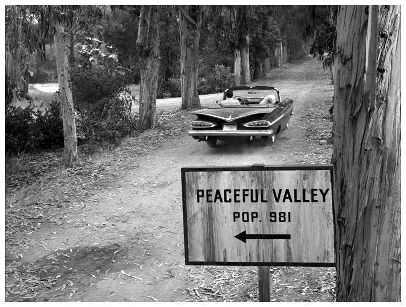 #105 VALLEY OF THE SHADOW – A reporter named Redfield stumbles into a peaceful town where miracles seem to occur due to technology and the townsfolk won’t let him leave. The town elders tell Redfield that he has the choice of staying forever in Peaceful Valley as a citizen where all of his needs and wants will be met and where he will live in constant harmony, or being executed in order to preserve the town’s technological secrets. He chooses to stay but feels imprisoned and yearns for freedom and the glory of saving the world from sickness and hunger. Redfield becomes romantically involved with Ellen, who wants to stay with him even if it means leaving Peaceful Valley. Redfield decides to make a break for it one evening but, knowing that the elders will try to stop him, he uses their technology to make a gun. He steals their book of formulas, setting off an alarm, and he has no choice but to shoot the three town elders. Once he and Ellen are outside the town limits, he looks at the book to see it full of blank pages. The elders reveal that Ellen was a plant and that Redfield spectacularly failed their test, confirming that if their technology did reach the outside world, even with the best intentions, death and destruction would inevitably follow. Directed by Perry Lafferty from a script by Charles Beaumont starring Ed Nelson & Natalie Trundy.