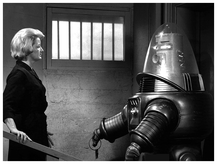 #153 THE BRAIN CENTRE AT WHIPPLE’S – Wallace Whipple, owner of a vast manufacturing corporation, decides to upgrade his plant to increase output by installing a device called an X109B14 Modified Transistorised Totally Automated Machine, which leads to many layoffs. Former employees try to convince him that the value of a human being outweighs the value of a mere machine, but their protests fall on deaf ears. Eventually the board of directors declare that Whipple is neurotically obsessed with machines and force him into retirement. He ends up joining his former employees at the bar across the road and expresses deep sorrow at his misfortune while a robot runs his office. Directed by Richard Donner from a script by Rod Serling starring Richard Deacon & Paul Newlan. The robot that ultimately replaces Mr. Whipple is good old Robby The Robot from Forbidden Planet (1956) and The Invisible Boy (1957). Robby appeared in two other episodes of The Twilight Zone: One For The Angels (as a toy) and Uncle Simon.