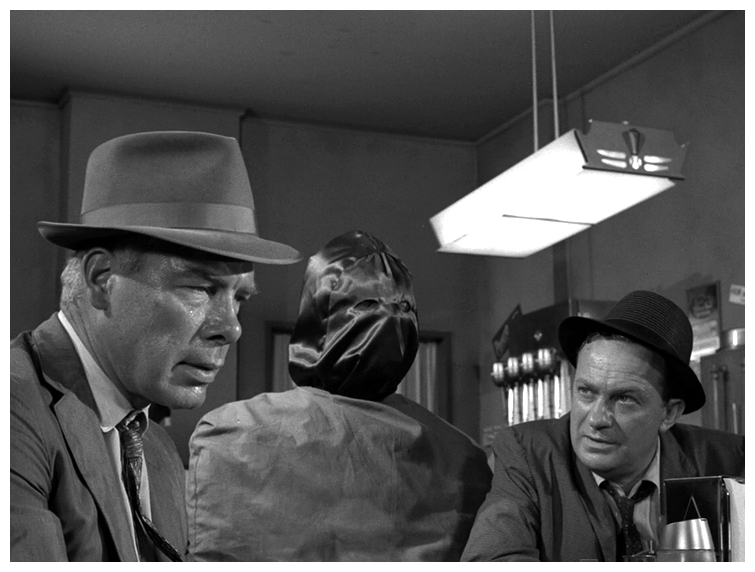 #134 YOU DRIVE – After killing a child in a hit-and-run accident, Oliver Pope is haunted by his own car. Directed by John Brahm from a script by Earl Hamner Junior starring Edward Andrews & Helen Westacott. External shots of Pope’s home and the park were filmed in a Culver City neighbourhood. The house that serves as Pope’s home still stands at 4183 Keystone Avenue. California license plates are seen but, since the story wasn’t location-specific, black tape is used to cover the word ‘California’. Edward Andrews refused to appear in the scene where Pope’s car almost runs him over, so a stand-in was pinned underneath the front tire instead.
