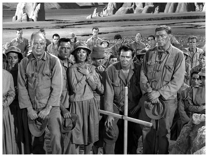 #127 THE OLD MAN IN THE CAVE – In a post-apocalyptic settlement, the inhabitants’ survival is dependent on the advice of an unseen man living in a nearby cave. This dependence is tested when a band of soldiers descends on their town. Directed by Alan Crosland Junior from a script by Rod Serling based on a story by Henry Slesar starring James Coburn & John Anderson. In this post-apocalyptic world humanity has destroyed itself, but does so again through greed, desire and faithlessness. It’s a warning not to ignore faith which often serves an important purpose in society. The events in the episode show that myths and beliefs are often based on fact or necessity, as is the case with the ‘old man’ who, despite being a computer, was ultimately keeping his ‘followers’ alive. It also reverses the usual notion of over-reliance on technology by suggesting an interdependence with machines when it is revealed that a man-made computer has been keeping people alive.
