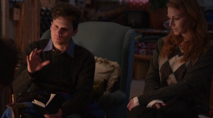 The script for The Frankenstein Theory sets up the film’s events quite effectively and quickly. In the opening scenes, a film crew begins recording the theories and history of its focus, Professor John Venkenheim. Relationships, vocations and conflicts are rapidly introduced. Annie (Christine Lakin) is the interviewer, an attractive and serious film student who also knows the Professor personally. Brian, Eric and Luke are the film crew, with the camera man being the silent one and the sound-man and producer being the obnoxious disbelievers. Together they embark on a journey to the Canadian outback where they meet their brusque and surly guide, Karl (Timothy V. Murphy). Karl escorts them on snow mobiles 70 kilometers off the beaten path to a hunter’s yurt, a small wooden cabin known as Potter’s Gulch. Between the isolation, Karl’s horrifying stories of wild bears and the sounds of a creature imposing enough to scare off a pack of howling wolves, the cast begins debating the presence of the creature. Is it a bear, a local maniac or the Frankenstein Monster. From here the film begins to struggle as it tries to unveil the creature without diving to deep into the fantastical. This makes for a realistic encounter with the beast, but falls short of providing much entertainment or excitement. A little more fantasy, supernatural or anything extraordinary is needed at this point to propel the film into heart racing mode. It’s a respectable choice the film makers make to keep their film grounded, but without more evidence or physicality surrounding the beast, the results are weak and uneventful.