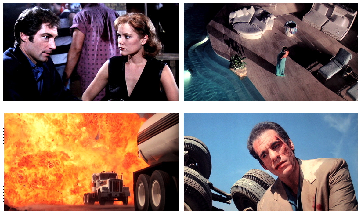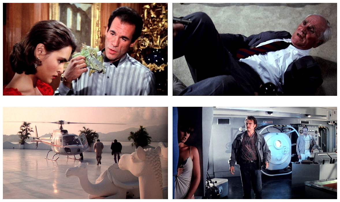 Licence To Kill (1989) was Bond number sixteen, the fifth to be directed by John Glen and the second (and final) outing for Timothy Dalton. The story combines two of Fleming’s stories mixed with aspects taken from original Japanese Ronin tales, in which Bond and his old friend Felix Leiter (David Hedison) apprehend an infamous drug lord named Sanchez (Robert Davi), who eventually escapes in order to kidnap Felix and his new bride. When Bond learns of this he goes after Sanchez, but when ‘M’ (Robert Brown) learns of this he has Bond’s license to kill revoked. Bond meets Pam Bouvier (Carey Lowell), one of Felix’s assistants, and hires her to get him to into Sanchez’s country. Bond befriends Sanchez with the pretense of looking for work, and he eventually trusts Bond enough to allow him to enter the inner circle of Sanchez’s drug empire. Due to the relatively small budget, Licence To Kill was the first Bond film not to be shot in the United Kingdom, and was made on location in Florida and Mexico instead.