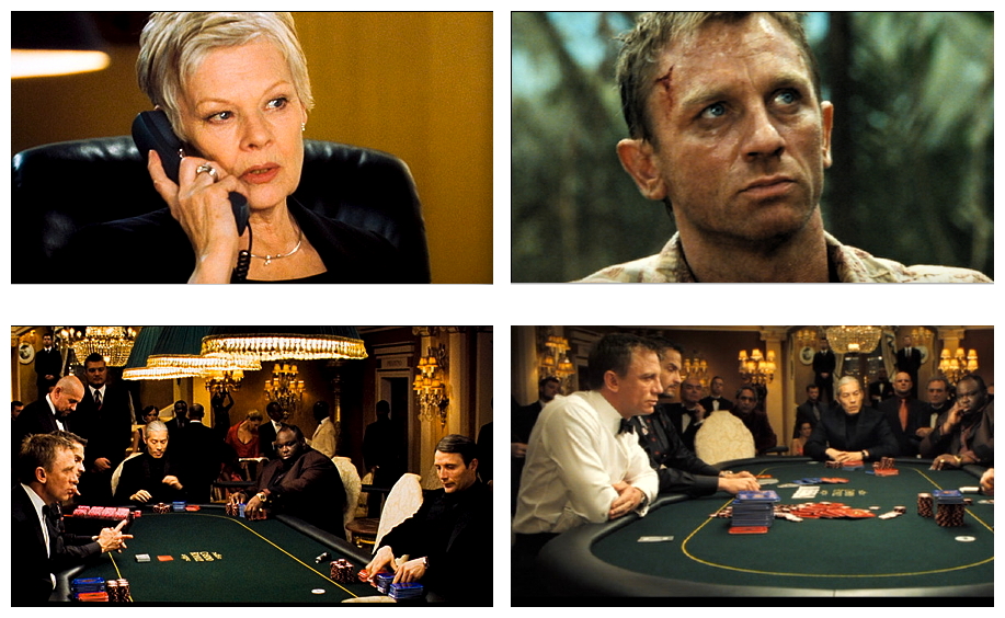 Casino Royale (2005) introduces Bond before he attains his license to kill, but he is no less dangerous and, with two professional assassinations in quick succession, he is elevated to ’00’ status. His first mission as 007 takes him to Uganda where investigates a terrorist named Mollaka (Sebastian Foucan), but not everything goes to plan and Bond decides to track down the rest of the terrorist cell. Following a lead to the Bahamas, he encounters Dimitrios (Simon Abkarian) and his wife Solange (Caterina Murino), and learns that Dimitrios is involved with Le Chiffre (Mads Mikkelson), banker to terrorist organisations worldwide. Le Chiffre plans to raise money in a high-stakes poker game at Casino Royale in Montenegro, and MI6 assigns 007 to play against him, knowing that if Le Chiffre loses it will destroy his organisation. ‘M’ (Judi Dench) also assigns the beguiling Vesper Lynd (Eva Green) to watch over Bond, whose interest in her deepens as they bravely face danger and torture together at the hands of Le Chiffre. While in Montenegro Bond allies himself with MI6 agent Mathis (Giancarlo Giannini) and CIA agent Felix Leiter (Jeffrey Wright), and the marathon poker game proceeds with dirty tricks and violence, raising the stakes beyond blood money until reaching a terrifying climax.
