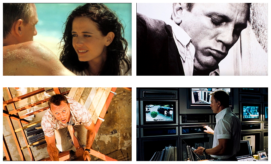 Screenwriters Neal Purvis and Robert Wade were brought in again to assemble the script, and Paul Haggis was hired for rewrites, his main contribution being the climax of the film: “The draft that was there was very faithful to the book and there was a confession, so in the original draft the character confessed and killed herself. She then sent Bond to chase after the villains – Bond chased the villains into the house. I don’t know why but I thought that Vesper had to be in the sinking house and Bond has to want to kill her and then try and save her.” For many of the special effects in the film, supervisor Chris Corbould significantly reduced the digital effects in favour of a more realistic style of filmmaking: “CGI is a great tool and can be very useful, but I will fight to the tooth and nail to do something for real. It’s the best way to go.” Casino Royale (2005) features music composed by David Arnold, his fourth soundtrack for the franchise, and the theme song You Know My Name was co-written and performed by Chris Cornell.