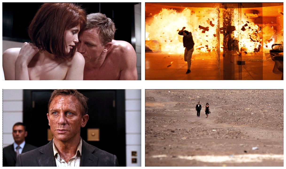 Neal Purvis and Robert Wade returned as screenwriters and completed a first draft, rewritten by Paul Haggis, completing it exactly two hours before the Writers Guild Of America went on strike. Any further work on the script had to be undertaken by Forster and Daniel Craig, who said, “We had the bare-bones of a script and then there was a writers strike and there was nothing we could do. We couldn’t employ a writer to finish it. I say to myself, ‘Never again’ but who knows? There was me trying to rewrite scenes, and a writer I am not.” Craig also admitted that the film was not initially meant to be a sequel, but it became one because of the rewrites undertaken by him and Forster. The original script had the climax take place in the Swiss Alps, but Forster insisted the action sequences to take place around the four traditional elements: earth; air; fire; water. Another big change made by Forster was hiring production designer Dennis Glassner instead of Bond regular Peter Lamont. David Arnold, who composed the scores for the previous four Bond films, returned for Quantum Of Solace (2008), saying that Forster likes to work very closely with his composers. Compared to the tight deadlines he usually received, Arnold was allowed to spend more time scoring the film, enabling him to experiment a little more with the soundtrack, including the theme song co-written and performed by Jack White and Alicia Keys, the first Bond theme to feature a duet.