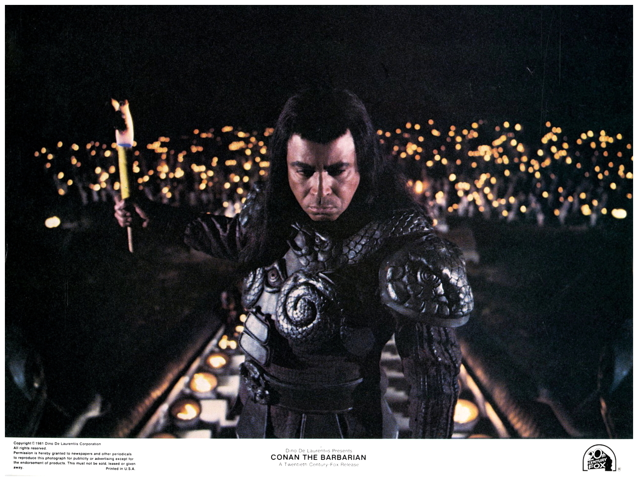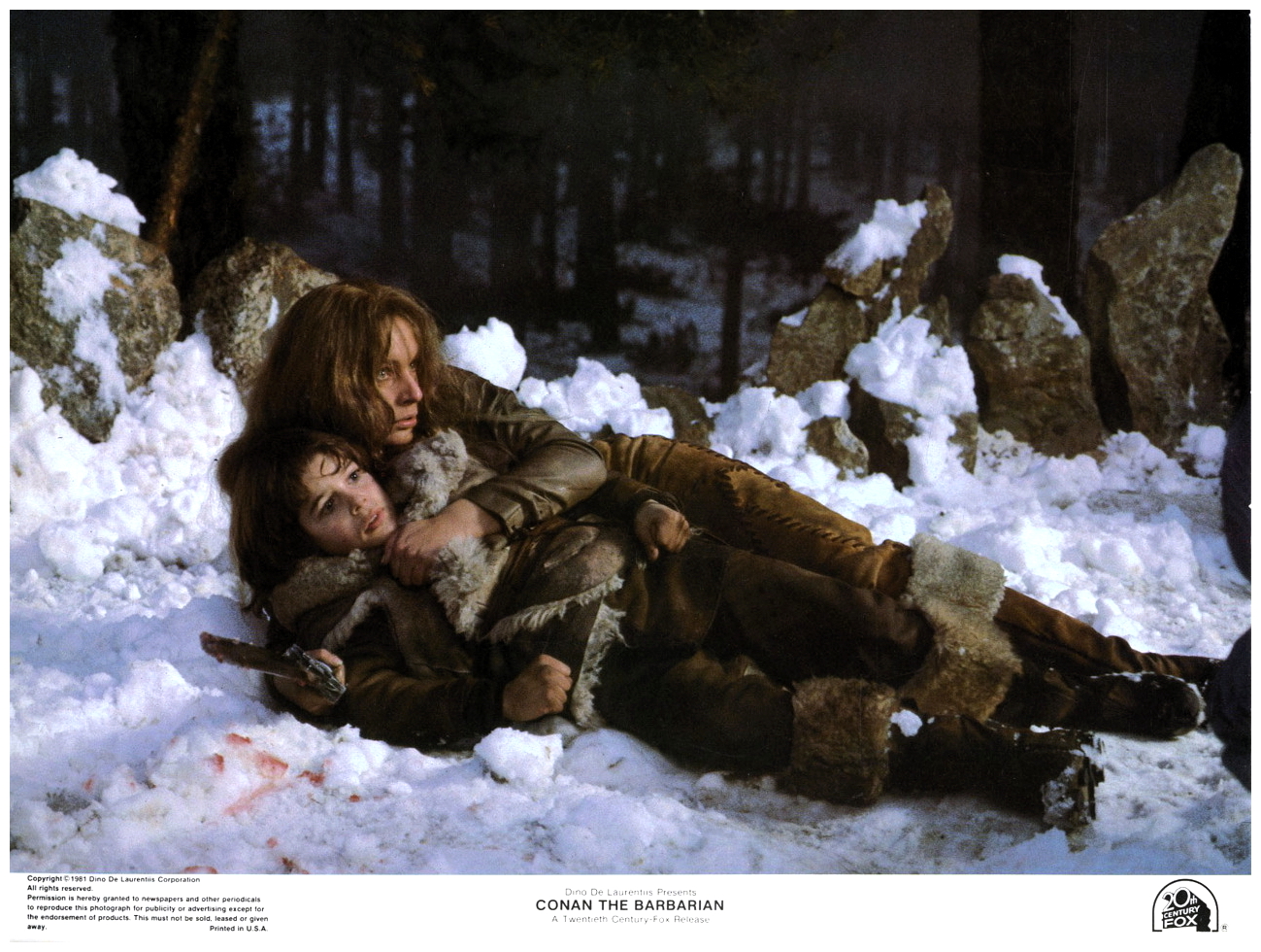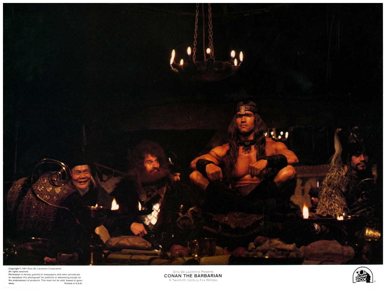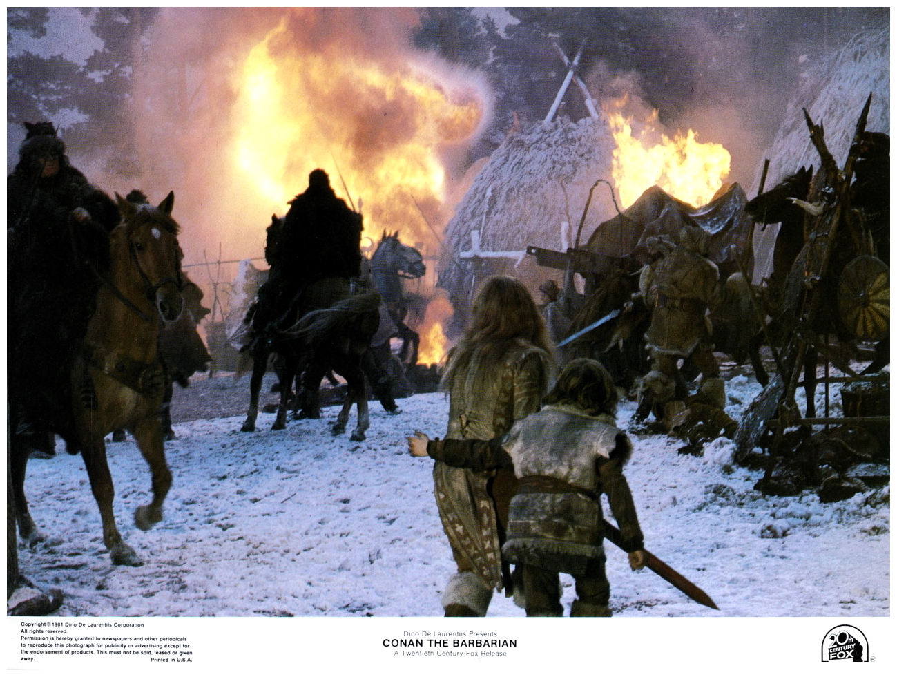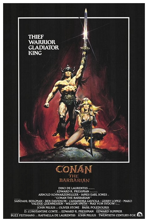“A village is attacked by the evil ruler of the Snake Cult, Thulsa Doom and his evil warriors, and a young boy named Conan is enslaved. Years later, Conan grows up and becomes a mighty warrior and is trained as a fighter. After years as a slave and as a gladiator, Conan is set free. Conan sets out on a quest as he vows to avenge his parents and solve the riddle of steel. Joined by a archer named Subotai, a beautiful thief who falls in love with Conan, Valeria and a Chinese wizard, Conan and his companions sets out to rescue Princess Yasmina, daughter of King Osric, from the Snake Cult, and get his revenge on Thulsa Doom and avenge his parents.” (courtesy IMDB)