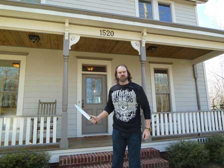 Tyler Mane (Michael Myers from Rob Zombie’s HALLOWEEN 1 & 2) is currently doing an exclusive screening tour for his new film ‘Compound Fracture’ (starring Tyler Mane, Derek Mears, Muse Watson, Leslie Easterbrook, Daniel Roebuck, Renae Geerlings, and Todd Farmer). On his way through North Carolina, Tyler stopped by The Myers House NC, which is a life-size replica of the infamous Michael Myers house from John Carpenter’s HALLOWEEN, owned by horror fan and independent filmmaker Kenny Caperton.