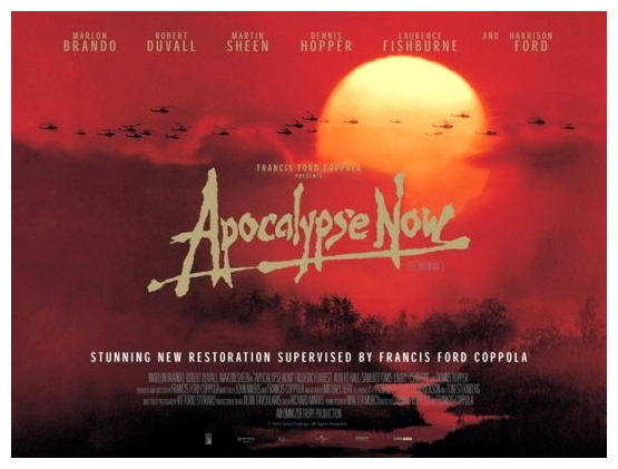 “It is the height of the war in Vietnam, and US Army Captain Willard is sent by Colonel Lucas and a General to carry out a mission that officially ‘does not exist, nor will it ever exist’. The mission: To seek out a mysterious Green Beret Colonel, Walter Kurtz, whose army has crossed the border into Cambodia and is conducting hit-and-run missions against the Viet Cong and NVA. The army believes Kurtz has gone completely insane and Willard’s job is to eliminate him! Willard, sent up the Nung River on a US Navy patrol boat, discovers that his target is one of the most decorated officers in the US Army. His crew meets up with surfer-type Lt. Colonel Kilgore, head of a US Army helicopter cavalry group which eliminates a Viet Cong outpost to provide an entry point into the Nung River. After some hair-raising encounters, in which some of his crew are killed, Willard, Lance and Chef reach Colonel Kurtz’s outpost, beyond the Do Lung Bridge. Now, after becoming prisoners of Kurtz, will Willard and the others be able to fulfill their mission?” (courtesy IMDB)