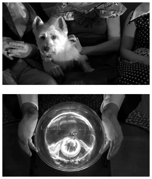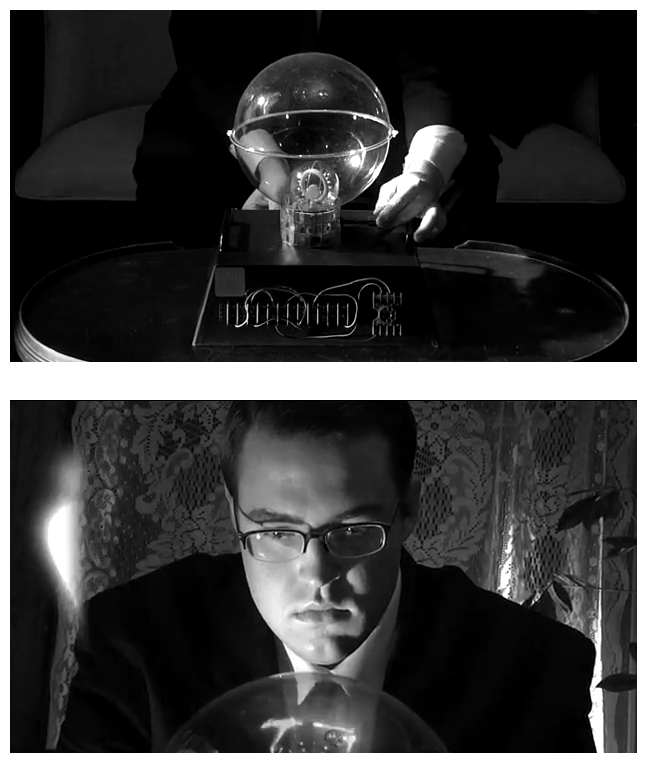 I just had to get that off my chest. Anyway, the newest old film you’ve ever seen, House Of Ghosts, is the latest addition to the great cinematic tradition of rich socialites throwing exclusive dinner parties during which a number of guests die horribly, like House On Haunted Hill (1959 and 1999), Night Of The Ghouls (1959), The Rocky Horror Picture Show (1975), Murder By Death (1976), Bloodbath At The House Of Death (1984) and Doctor Fischer Of Geneva (1985). Well, this time those crazy aristocrats have hired a spiritual medium who opens a portal to the great beyond with an unholy infernal machine. Just because it looks like a transparent bowling ball full of fireflies makes it no less sacrilegious. What could be on the other side? Evil stuff, of course, that’s where it’s usually kept.