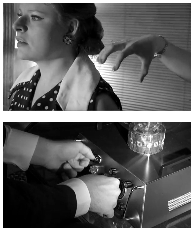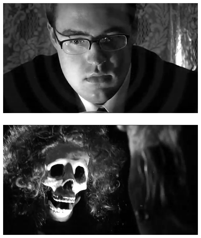 As many of you already know, Chris has been producing these loving homages to the B-movies of the fifties for over seven years now. He’s been surprisingly good at pretending to be successful at it and simply refuses to stop. His movies routinely rack-up awards and are frequently screened at film festivals, conventions and drive-ins all over the world, which only encourages him more! A true inspiration to independent filmmakers everywhere no matter how bad you are, in fact, I’ll let the moneyless movie-maker from Minneapolis introduce himself. The one, the only (and that’s more than enough) Christopher Mihm himself introduces the movie to reveal the wonders of film-making and his latest William Castle-like gimmick – the ‘Fear Shield’ – essentially a piece of cardboard to place over your eyes to protect you from the intense terror to be experienced while watching House Of Ghosts. You get two of these free with every DVD purchased from www.sainteuphoria.com
