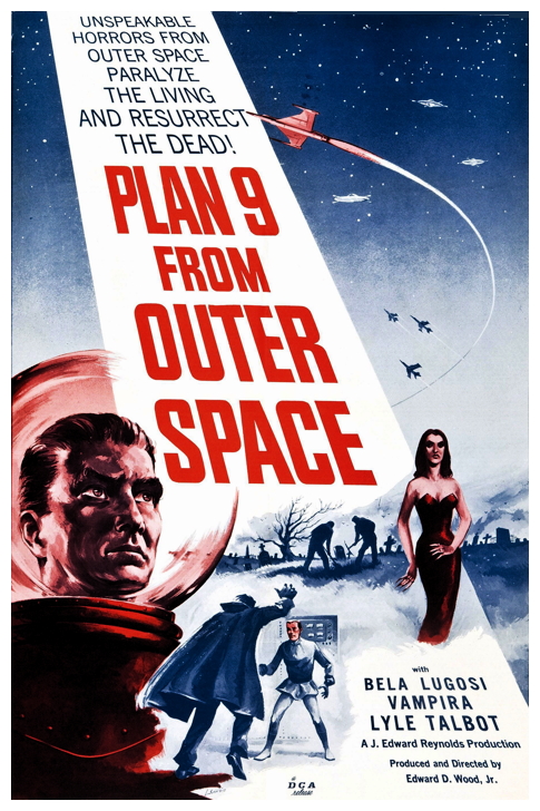 This week I have the pleasure to deliver unto you a real classic of movie-making, a film so ingenious that Hollywood spent three hundred times its budget in an attempt to reproduce the truly jaw-dropping effect this motion picture has had over millions, nay, billions of movie-goers all over the world. When it comes to naming the best film ever made, a lively debate will inevitably occur. There will be fanboys insisting on Star Wars IV A New Hope (1977), cinephiles advocating Citizen Kane (1941), champions of old Hollywood suggesting Gone With The Wind (1939) or Casablanca (1942), and the cult worshipers pushing anything by Akira Kurosawa, Stanley Kubrick or Alfred Hitchcock. But when it comes to naming the worst film ever made, there’s an almost unanimous candidate that always gets pegged for that sorry title: Edward D. Wood Junior’s Plan 9 From Outer Space (1959).