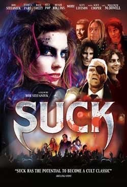 Suck is a wild ride down a highway to hell, with a killer soundtrack that includes Iggy Pop’s, “TVeye” and “Success”; Alice Cooper’s, “I am a Spider”; Lou Reed’s Velvet Underground’s “Sweet Nuthin”; David Bowie’s, “Here Comes the Night” and The Rolling Stones, “Sympathy for the Devil”.