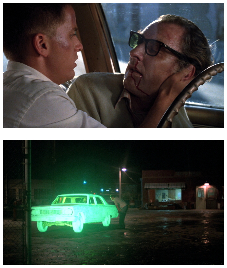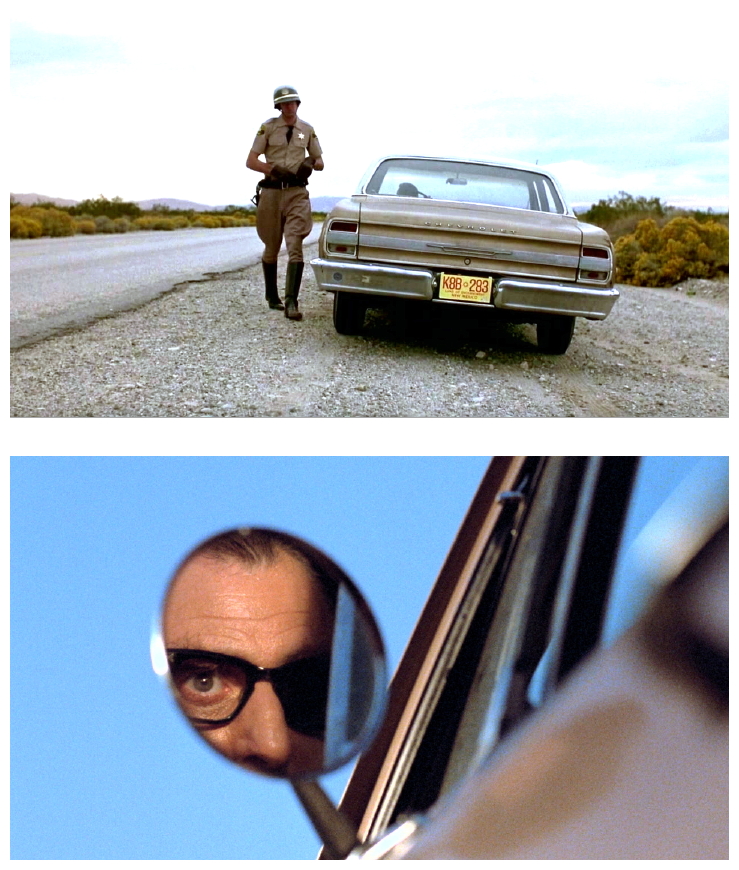 Directed by Alex Cox, Repo Man was produced entirely outside of the Hollywood system during a time when independents were still independent, and then ultimately purchased by Universal Studios for international distribution. Exactly the same thing happened fifteen years earlier to Dennis Hopper‘s independently produced cult classic Easy Rider (1969), which was ultimately snapped up by Columbia for worldwide release. From ‘New Hollywood’ to ‘Post-Classical Hollywood’, from modernism to postmodernism, from Easy Rider to Repo Man. Two road movies, yet two utterly different films.