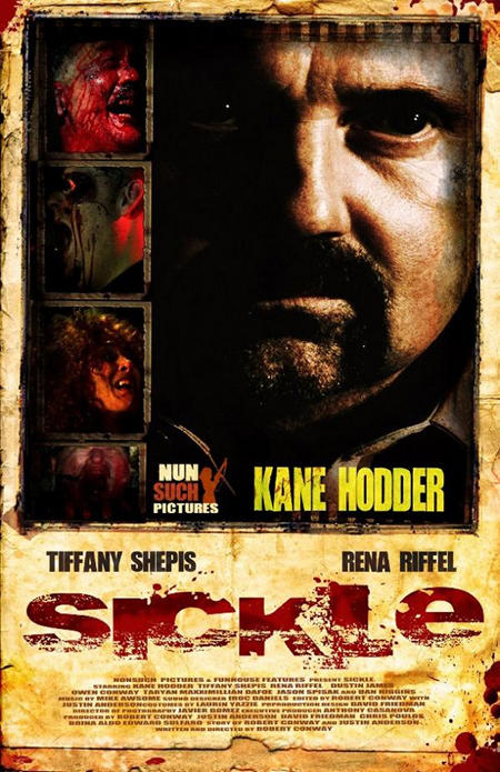 Before this afternoon I had not heard of the disturbing looking little flick. It stars Kane Hodder and it’s titled SICKLE. A gritty, bloody, nasty little trailer popped up on line today. It is most definitely NSFW!