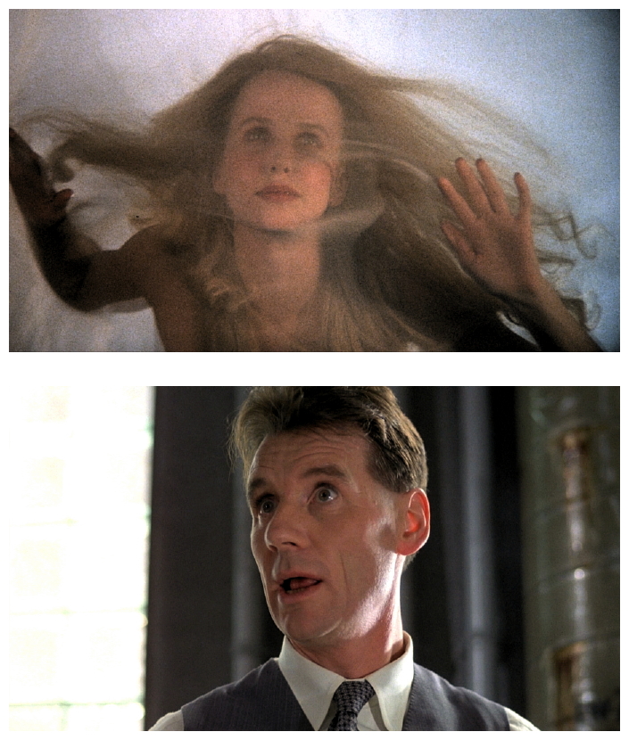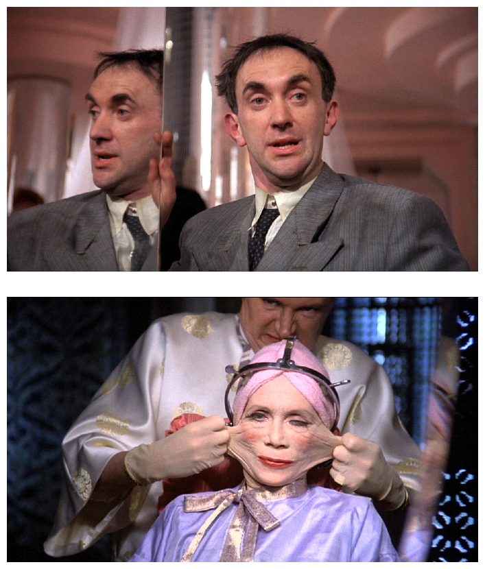 We think of Cold War bureaucracies as being lethally efficient like in Orwell’s novel, but the one Gilliam presents us with is more inefficient as ever. Things break down constantly (elevators, gadgets, heating, etc.) and mistakes are made by the dozen. Meanwhile, low-level public servant and latter-day Winston Smith Sam Lowry (Jonathan Pryce) escapes in his dreams where, accompanied by the kitschy samba strains of Aquarela Do Brasil by Ary Baroso, he soars above the clouds, an Icarus-winged knight in shining armour who rescues a gauze-shrouded blonde damsel-in-distress (Kim Greist). Promoted to the Ministry Of Information, he tracks down the error and meets the Buttles’ outraged neighbour – his dream girl – who actually chain-smokes and drives a monster truck. Breaking protocol left, right and centre, and getting in way over his head, Sam is inevitably interrogated as a terrorist himself.