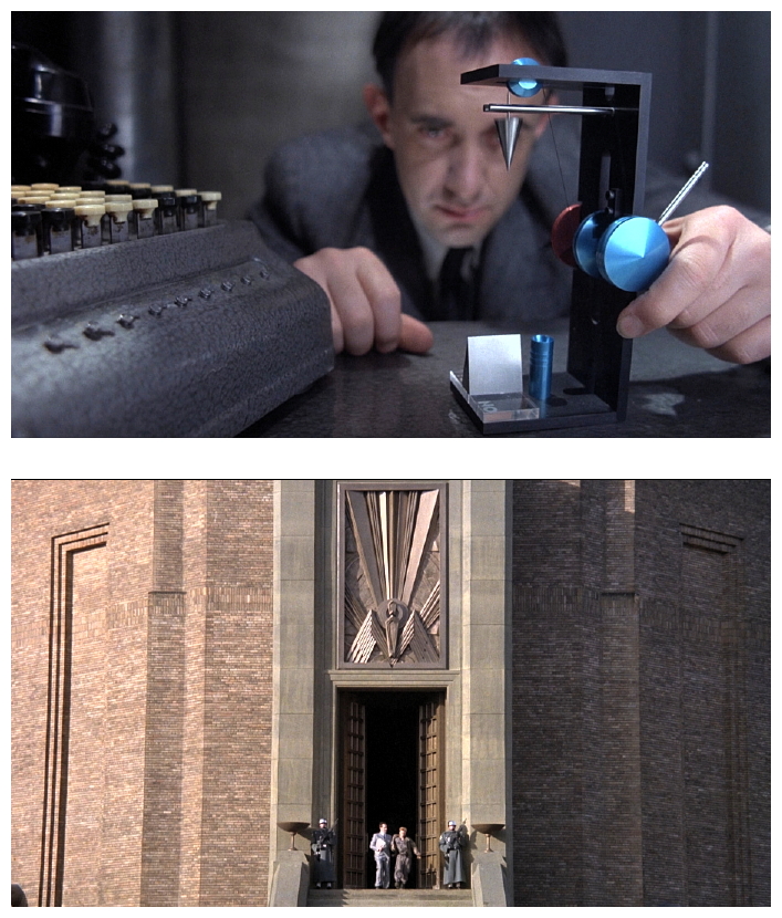 Terry Gilliam’s fiercely imaginative and blackly comic adaptation of a George Orwell-style dystopia, Brazil (1985), converts Nineteen Eighty-Four‘s chilling indictment of fascism and Stalinism into a satire on modern bureaucracy, consumerism and the Thatcher-Regan era, making it the director’s most outspokenly conceptual film. Brazil starts at 8.49am somewhere in the twentieth century, when a literal bug in the system replaces the last name of a suspected terrorist – Tuttle – with that of an innocent shoe repairman – Buttle – who is then interrogated and killed. Bumbling polite Britishers apologetically perform the strong-arm tactics we normally associate with KGB agents or uniformed police.