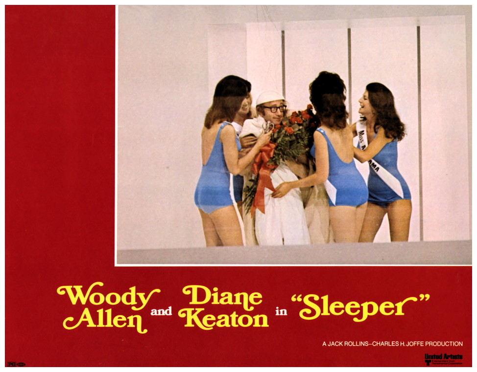 Ordinary ‘little guy’ Miles Monroe (Woody Allen) is a jazz musician from the twentieth century who submits to a minor ulcer operation and wakes up from a two-hundred-year frozen sleep to find himself in this clinical future. Although he’s never been a very political person, he is recruited by the underground to perform a mission that will bring down the totalitarian regime. But Miles finds it difficult to elude the fascist police, and passes himself off as a robot-servant at a party being held by bourgeois hedonist Luna (Diane Keaton). The film becomes a sort-of futuristic version of The Thirty-Nine Steps (1935) when Miles forces Luna to go along with him. At first she screams her head off, but then she too joins the underground. Of course they fall in love.