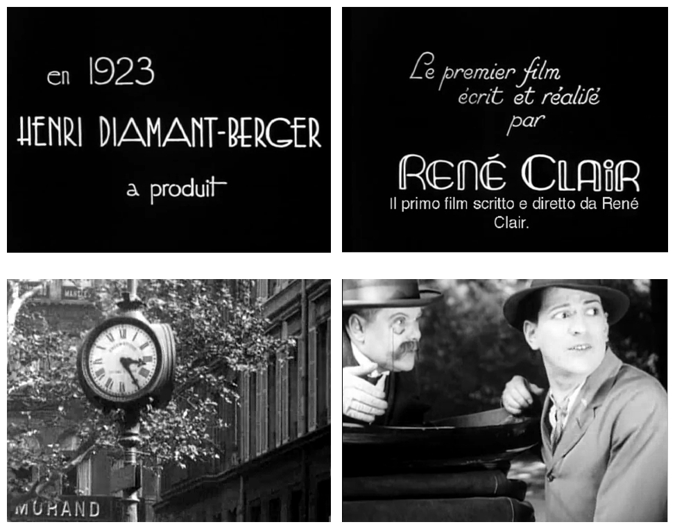 An early experimental opus, Clair’s directorial debut Paris Asleep is often wrongly claimed to be the first science fiction film, as many were unaware of Georges Méliès‘ Trip To The Moon (1902). Paris Asleep is rightly thought of, however, as one of the landmarks of French silent cinema. Although Clair insisted that the film was based on one of his own daydreams, some reports state that it was inspired by an earlier French comedy entitled Onesime Horloger (1913) made by Jean Durand and starring the then-famous clown Ernest Bourbon (known as Onesime) as a lovesick suitor who tampers with time in order to speed up the arrival of his wedding day, with the result that his son outgrows him almost before the honeymoon is concluded.
