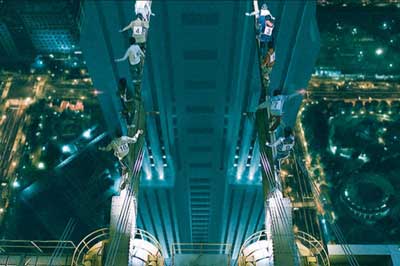 Kaiji takes a chance and signs up for a 2nd game called “Brave man road”. Him and a handful have to endure fear inducing challenges that offer more riches at the cost of their lives if they lose. Meanwhile, the rich and indulgent watch from the comfort of TV monitors, make bets and enjoy their lavish lifestyles fueled by money and self satisfaction. The game that is played consists of a simple girder that connects between 2 high rise buildings. The men must deal with their fear of heights, their sanity and the will to make the crossing without falling. An added bonus of electricity makes sure they don’t grab and hold onto the girder with their hands. This moment is the most dramatic of the film that pits the men against a vertigo inducing height that would be hard for any person to face. The scene is enhanced with what some might say is “over acted drama” but is also the film’s highpoint of emotion. Oh, ya……. it doesn’t help matters that it also starts raining.