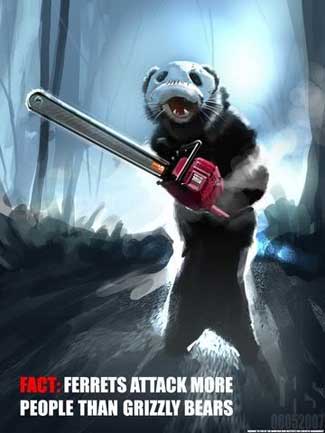 First, commercial land has given a nod to the slasher thanks to the people at Mountain Dew. Yes, the commercial features a chainsaw wielding ferret chasing down a couple in the woods. The announcer states that ferrets have a higher attack rate than bears. Check this out if you because this is f*cking hysterical!