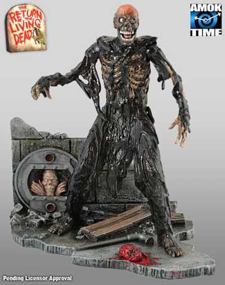This piece is the Delamorte Deadly Delight, incidentally because it is from one of my favorite zombie movies of all time! The Return Of The Living Dead’s Tarman action figure features ball jointed neck, shoulders, opening jaw, and base with Trioxin canister and piece of bitten brain. The figure is beautifully detailed and is the first R. O. T. L. D. figure ever! Contain this stiff when the Tarman is released soon from Amok Time. Order yours now on HOUSEOFMYSTERIOUSSECRETS. COM!