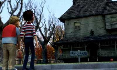 With a strong cast of voice characters and a horror genre crossing children’s adventure tale, comes a new feature from Steven Spielberg titled “Monster House”. Alot has come down the pipe in recent 3D animations films, so it’s always good to see one that has a classic scary edge to it combined with laughs. Especially since it gives me an opportunity to sit down and share the viewing with my children. I’m sure you’ve all experienced in your earlier years that creepy old house down the street that everyone’s afraid of? Sure, the stories are different but it’s all part of our days of youth when anything that looked old and dark was considered off limits, and because of that was the prime object of our attention.