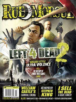 Rue Morgue arrives with the latest issue #95! Sporting a “Left for Dead” cover means only 1 thing….. video games! More specifically horror video games. As we dig a bit deeper we find a section devoted to the onslaught and years of zombie video game releases.