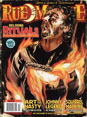 Another turning point for a mainstay in the horror arena, says goodbye to the editorial talents of Jovanka. This issue begins a new phase for the team with a new editor in hand to carry forward. Though a quick glance thru would indicate that most of what we are used to is still very much in tact. Surprisingly though the cover art is dedicated to an oldie resurfaced called “Rituals” (the Creeper) that I’m willing to bet is as foreign to most as it was to me. I found it interesting that they would feature this title as there cover focus. Which raises 2 questions, is the movie any good and does it deserve the attention it is receiving as a cover piece with 7 pages within? Well I for one am willing to check it out in the interest of another gem slipping thru my fingers in years past.