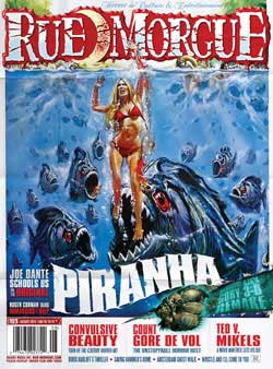 Every ones talking about Piranhas, and of course hot on its trail is the new film in 3D and an old “classic” revived from the grave. Rue Morgue pays their tribute with a full cover featuring the classic art that ripped off Jaws in a time when going into the waters was more scarier than Leather face. Of course it doesn’t stop there as the mag has also included a 5 pages dedicated to the old release.