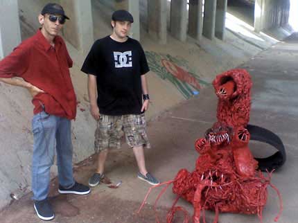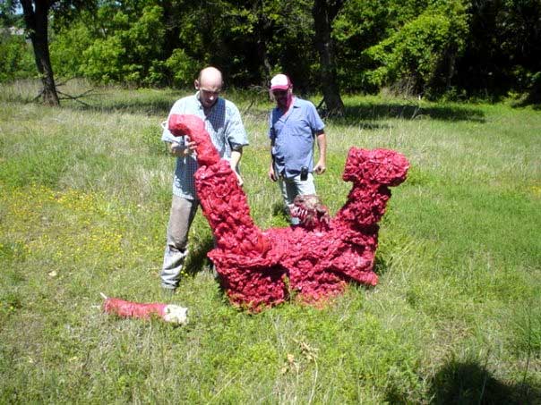 He deliberately wanted a grubby, dirty look similar to grindhouse films of the seventies and eighties, which was also praised by several reviewers who specialise in underground films of this kind. The opening credits sequence actually represent an amphibian mutation – hence the cells multiplying behind the credits while it cuts between scattered satellite debris and the titles. After that, the film focuses almost entirely on the monster killing different people as it moves from location to location in real time. Speaking of which, the ‘papier mache sticks dipped in KY jelly’ won Best Monster at the Tulsa Underground Horror Film Festival!