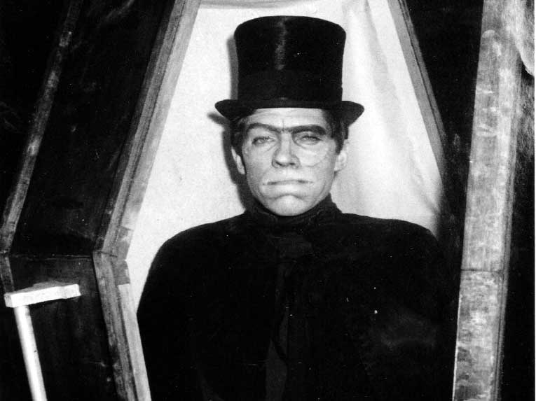 A. I was approached by Channel 0 up in Brisbane. I’d made a bit of a small-time amateur career at that stage playing villains on stage – I played Caliban in The Tempest, and I played the man who turns into a rhinoceros in Rhinoceros, and I was doing theatre restaurant playing the villain in The Drunkard, and I loved doing my own make-up. I did that in all sorts of shows, and Channel 0 approached me – they already had Deadly Earnest in Sydney and in Melbourne, and because of course it wasn’t networked in those days, every capital city had its own version of Deadly Earnest. So they asked me if I’d do it, and they gave me a pretty open brief and I decided what I wanted was part vampire, part zombie who walks like Frankenstein’s monster. So it was based a bit on Boris Karloff, but also Alfred Hitchcock’s television show – Alfred Hitchcock Presents – was very popular then, so I sort-of borrowed a bit of his voice, and I had to make my mouth sort-of look more Frankenstein monster. I had cotton wool padding inside my lips, long before Brando thought of the idea, so I adopted a sort-of Hitchcock voice with a bit of Boris Karloff thrown in, and that was the character I did. He emerged from a coffin every night, that was the important thing. But having said that, we also did a few send-ups of other shows that were popular at the time, like The Dean Martin Show was very popular, and his theme song was “Everybody Needs To Love Somebody Sometime.” So on Deadly, which was one of our most successful shows, I had Wilbur Kentwell, who was a famous organist and pianist who worked on the ABC on all sorts of shows all over Australia and he was, even then – I’m talking about 1967 or 1968 – was very old. But we had a big baby grand at Channel 0 in the studio, and so Deadly Earnest’s introduction for that night was “Everybody Loves A Body Sometime, Everybody Loves A Corpse Somehow. Your Blood May Be Well Worth Bottling, But I’d Rather Drink It Now…” That was one of the gags we’d come up with.