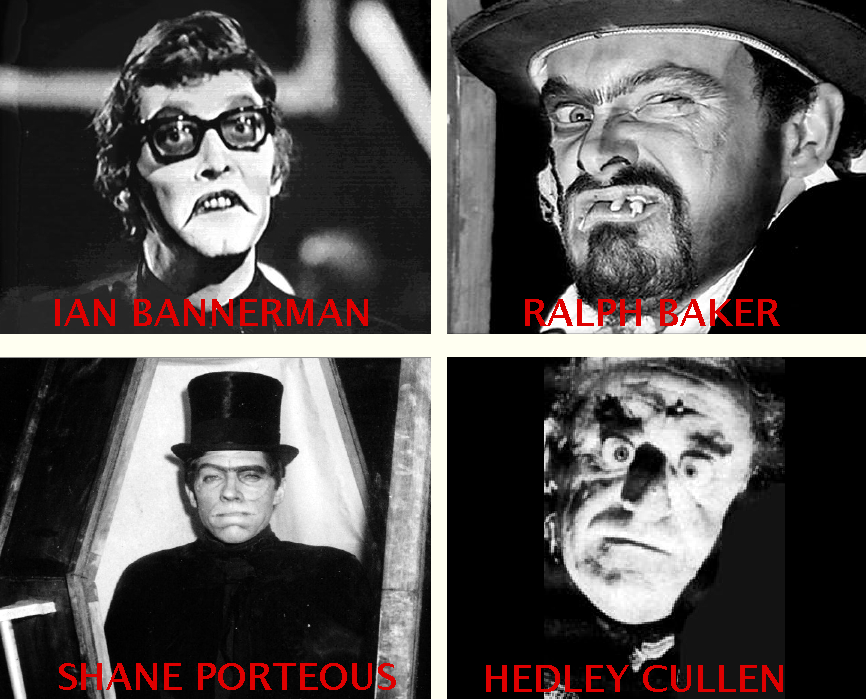 Way back in the sixties, way before Elvira, a favourite amongst Australian students was Deadly Earnest, the television schlock horror host on the 0-10 Network. Late on Friday nights, the atrocious old science fiction and horror films became compulsory viewing, solely because of the Gothic Master of Ceremonies. Actors portraying Deadly Earnest were: Ian Bannerman (TEN-10 Sydney); Ralph Baker (ATV-0 Melbourne); Shane Porteous (TVQ-0 Brisbane); and Hedley Cullen (SAS-10 Adelaide). Shane Porteous brought Deadly Earnest to the tropics. Yes, this is the same gentleman who starred in the long-running television soap opera A Country Practice, as Doctor Elliot. And you thought he was such a nice doctor, but just like Doctor Jekyll, he could turn into a Mister Hyde! Shane kept the Deadly tradition alive, by killing off characters in Neighbours.